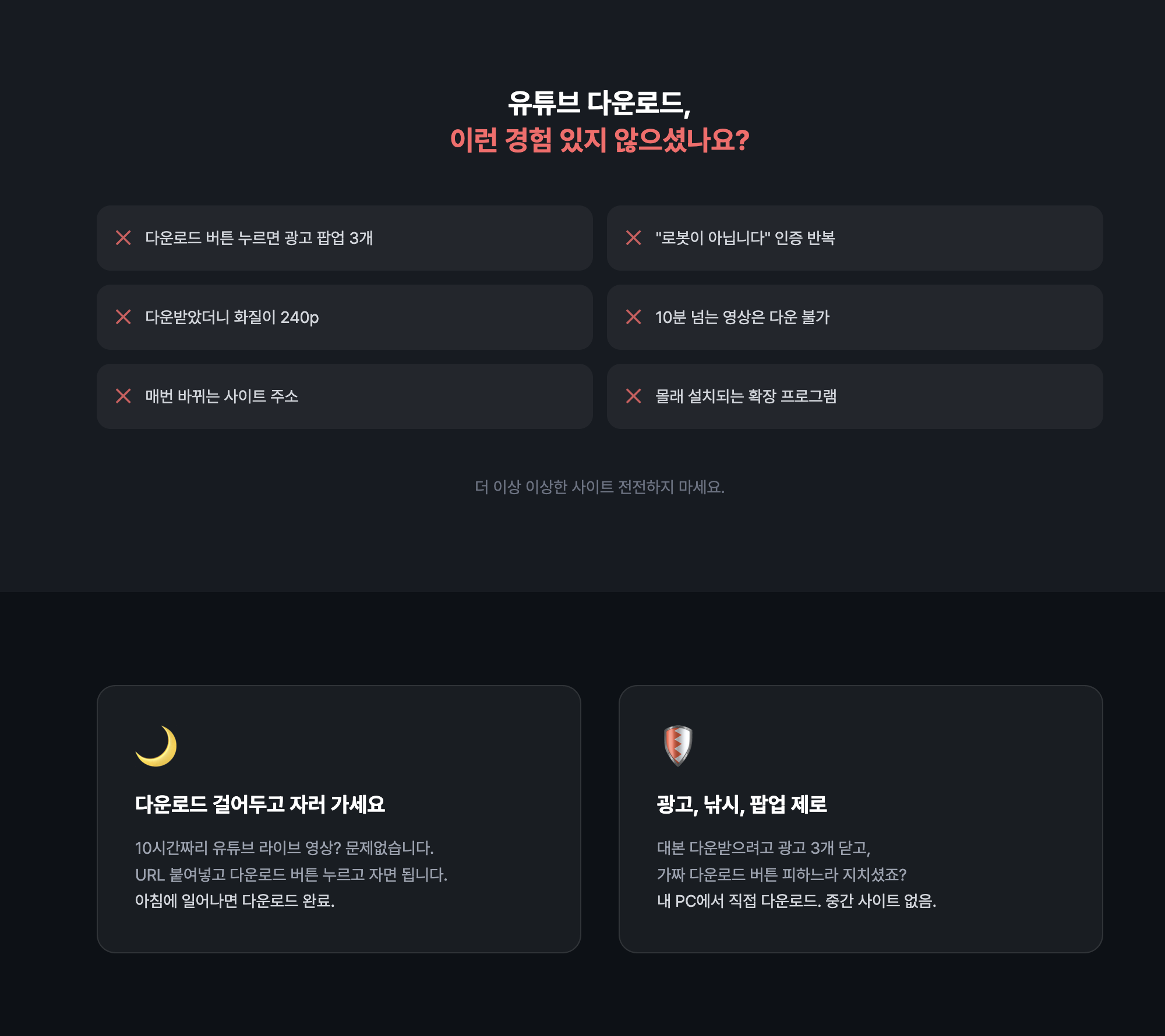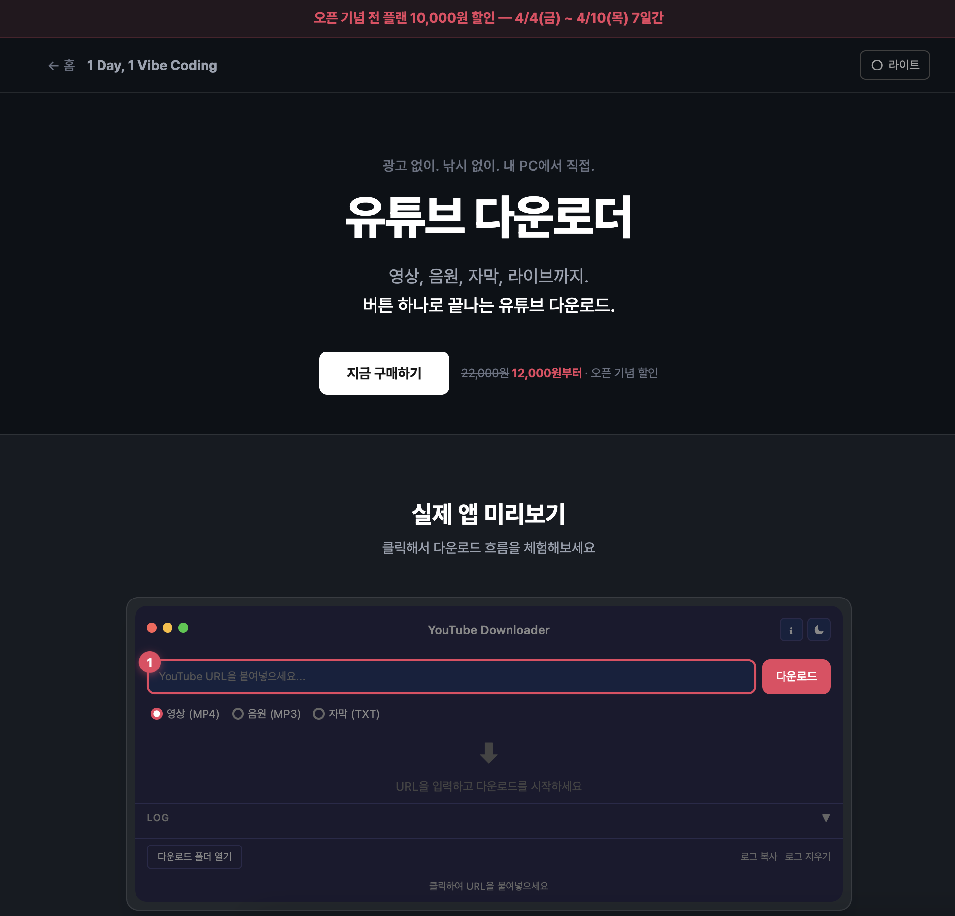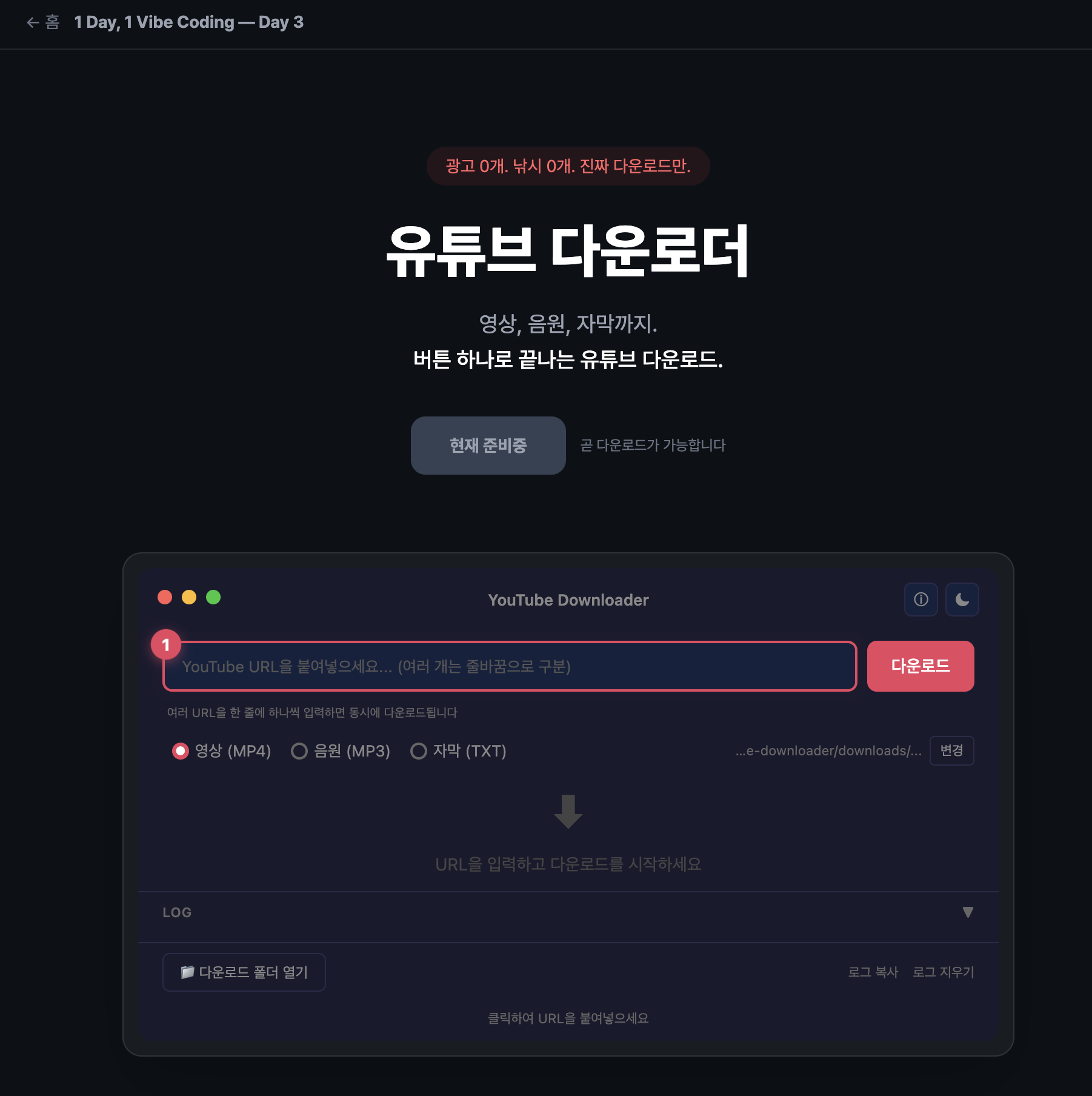 유튜브 다운로더 랜딩페이지: 1day1vibe.com/youtube-downloader